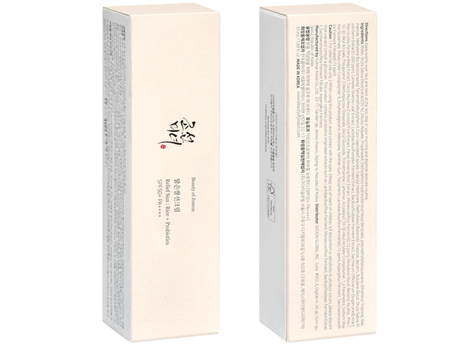 Apply a generous amount of Beauty of Joseon Relief Sun Rice + Probiotics Sunscreen SPF50+ 50ml to the face and sun-exposed areas. Reapply frequently every two hours or after swimming, perspiring, or toweling.