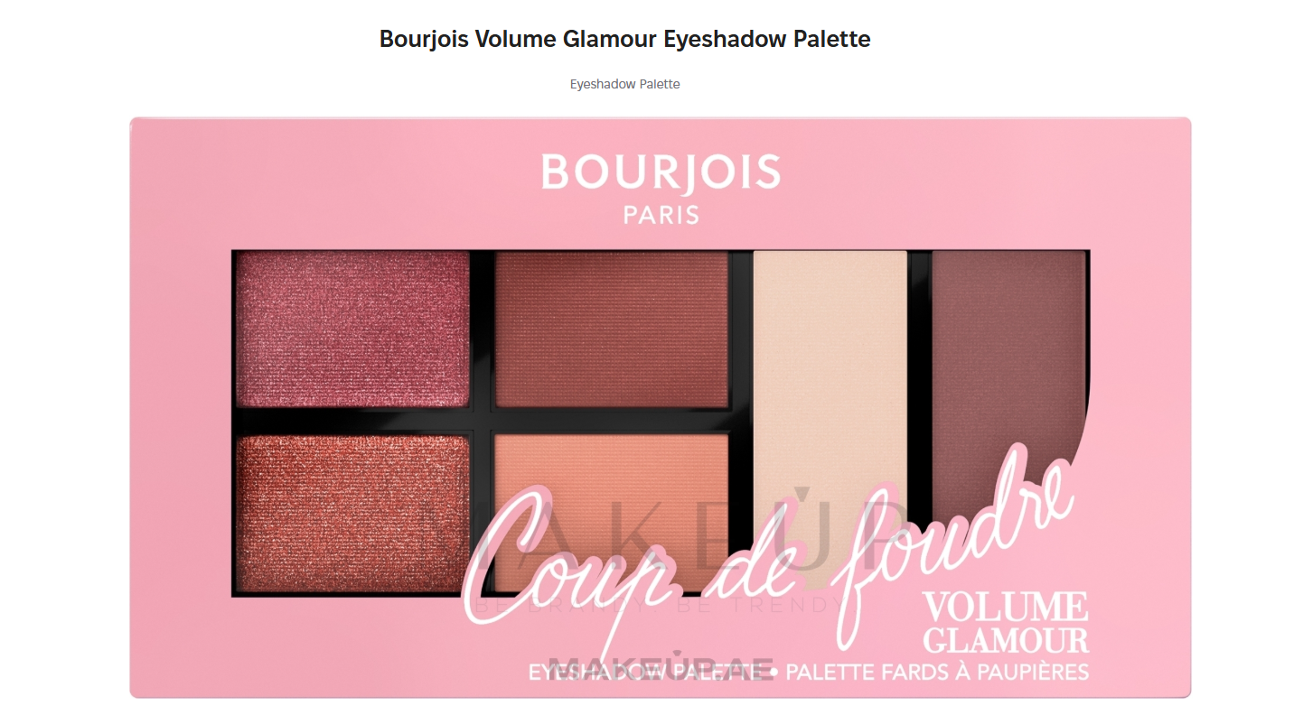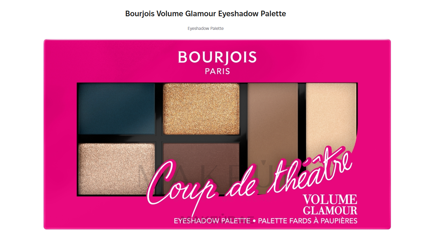 - Express your individual style with Bourjois Volume Glamour Eyeshadow Palette – 6 shades. Feeling alluring, playful, romantic? There’s an eye palette to suit every style and mood. Its unique, best-in-class formula looks and feels divine. The ultra-pigmented shades deliver long-lasting, rich color pay-off for maximum impact and wear. And the smooth, velvety texture makes it easy to blend one tone seamlessly into another for a très professional look. Team up with your favorite Volume Glamour Mascara for spectacular defined eyes that say volumes.