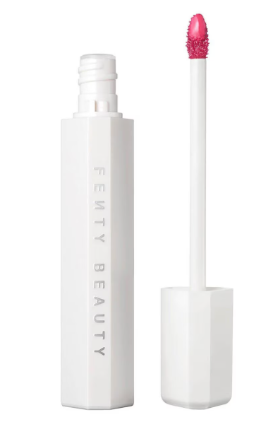 Splash on this lip stain that goes on glossy and leaves behind a soft tint—delivering instant hydration for an effortless, low-maintenance look. This is the lip stain that just hits different—giving you juicy, all-day hydration. This lip tint formula features an oil-in-water innovation with squalene, in a range of vibrant shades. Hydrates instantly and all day Feather- & bleed-resistant Locks in moisture & conditions lips to leave them feeling soft & smooth Goes on glossy—leaves behind a soft tint Customizable, sheer-to-medium coverage Fenty Beauty is 100% cruelty free. | Size: 6.5ml