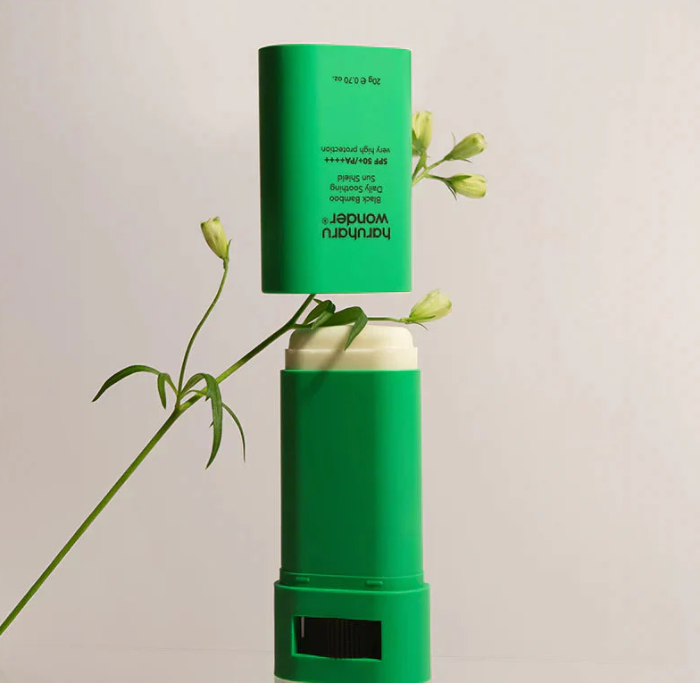 Haruharu Wonder Black Bamboo Daily Soothing Sun Shield offers convenient SPF 50+ PA++++ UVA and UVB protection in a swipeable stick format. Infused with patented fermented bamboo shoot extract, betaine, niacinamide, and adenosine, this vegan chemical sunscreen provides a cooling sensation while moisturizing and smoothing the skin. The balm texture delivers a semi-matte finish, making it ideal for those with oily skin types