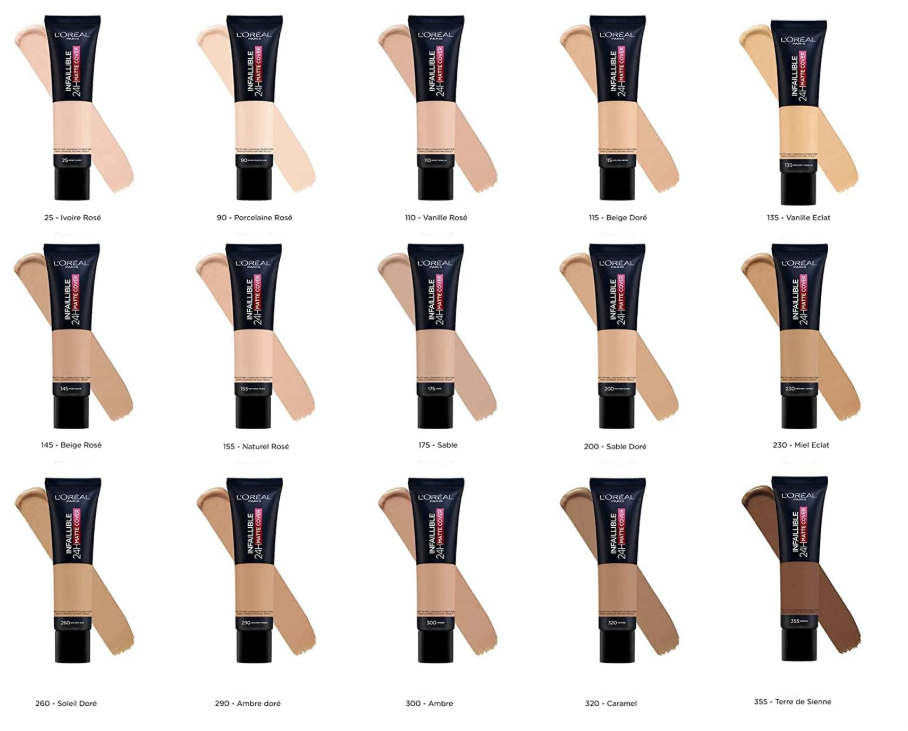 Discover the waterproof foundation infallible 24h matte cover, which was tested on 103 women and guarantees maximum matte coverage all day. Surprisingly natural! enjoy all the advantages of a waterproof foundation with maximum matte coverage that lasts all day. This full coverage foundation has a mattifying effect, is lightweight and super natural. It is also characterized by a 24h matte finish and shine control the foundation’s high concentration of pigments in an ultra-fluid texture results in high coverage with second skin finish. How to apply foundation flawlessly: shake well before use. Dot this waterproof foundation onto cheeks, nose, chin, and forehead. Using fingers, brush or a makeup sponge, blend foundation out towards hairline and down.