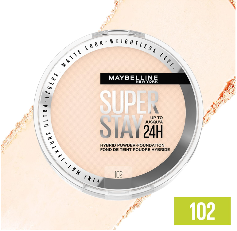 Get your soft-matte look with Maybelline New York’s SuperStay up to 24H Hybrid Powder-Foundation. This medium-to-full coverage superhero hybrid delivers up to 24 hours of super staying power. Fueled by Super resistant hybrid technology, its formula unites the best of both worlds: the performance of a liquid with the comfort of a powder. Super lightweight, super comfortable feel. Longwear that is sweat-resistant, water-resistant, and transfer-resistant. Resists caking and patchiness. Just swipe it on and you’re ready to take on the city!