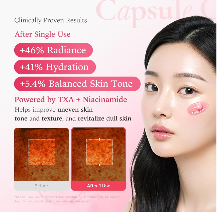 txa helps improve uneven skin tone, niacinamide leaves skin smooth, soft, and refreshed, alpha-arbutin and glutathione boost moisture and skin clarity for a healthy natural glow.