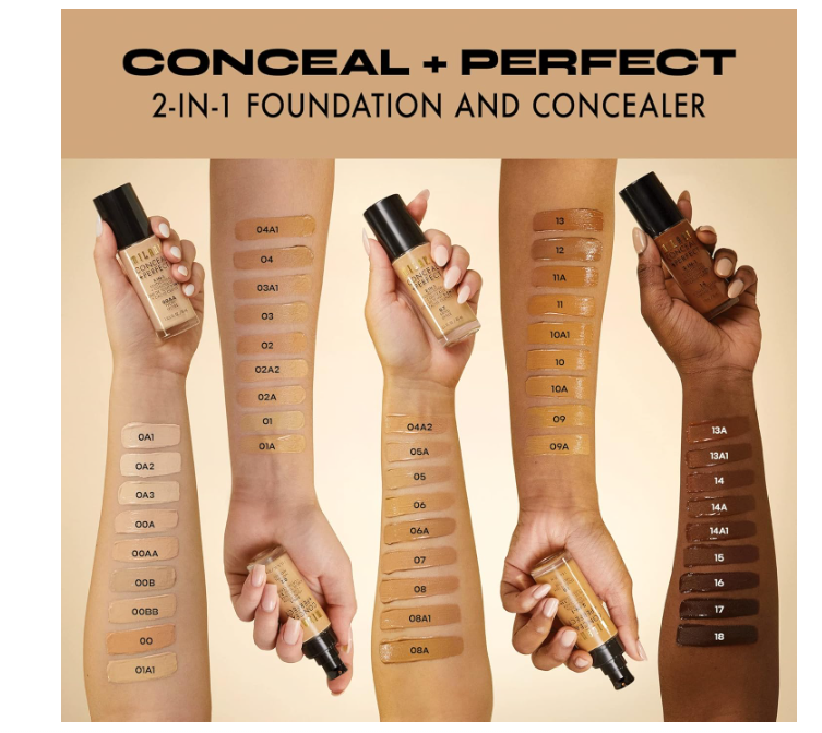 It’s a concealer it’s a foundation it’s a makeup multitasker! Combat defiant under eye circles, unwanted redness and other skin imperfections with our water-resistant foundation and concealer set. The MILANI Conceal + Perfect 2-In-1 Foundation + Concealer gives you a bright, bold finish in one flawless skin-perfecting step. This smart formula applies evenly to conceal and tone, leaving skin with a naturally beautiful finish. This ultimate foundation and concealer duo provides medium to full coverage for complexion perfection that goes hard all day, every day.