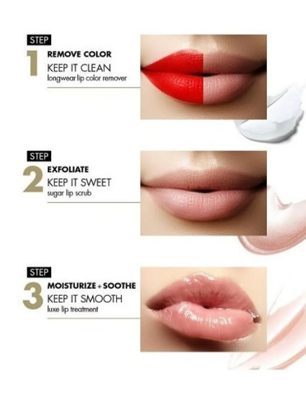 With just one swipe, Keep It Clean Longwear Lip Color Remover erases every trace of longwear, matte and metallic lip color. The gentle yet effective, hydrating formula leaves lips feeling extra soft, nourished, restored and revitalized. Follow with Keep It Sweet Sugar Lip Scrub and Keep It Smooth Luxe Lip Treatment for a truly indulgent lip experience.