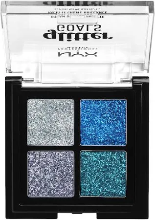 NYX Professional Makeup Glitter Goals Quad Palette is the perfect product to shower yourself in sparkles! The texture is creamy-smooth and spreadable for loading on the lustre and making your face and body shine bright.