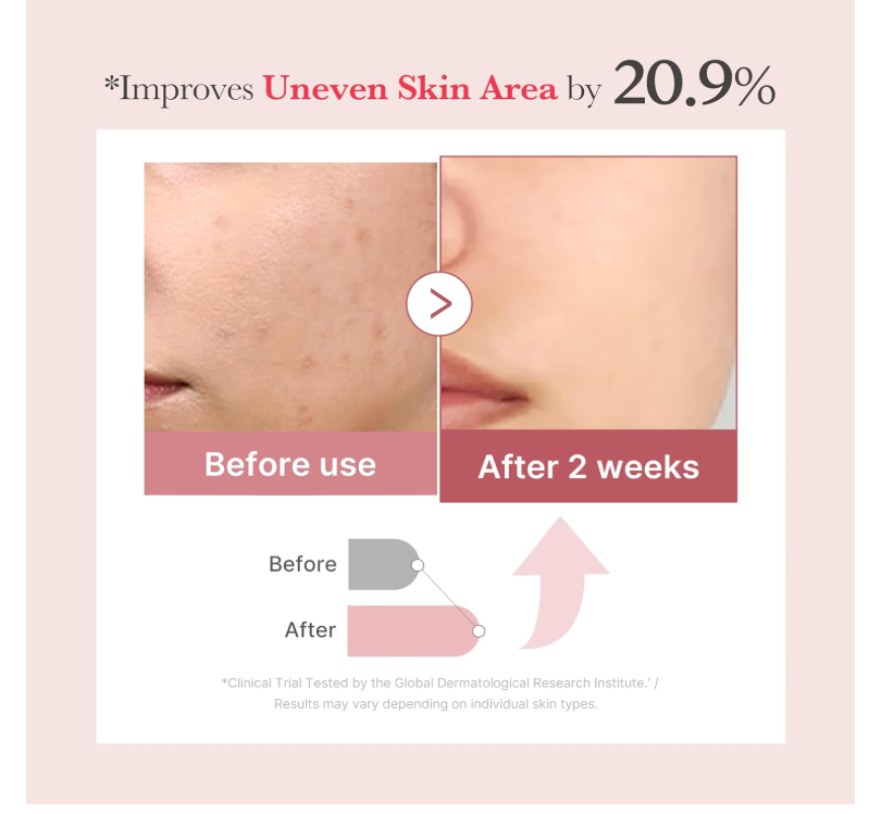 - Tone correction – niacinamide helps improve tone and reduce discoloration.