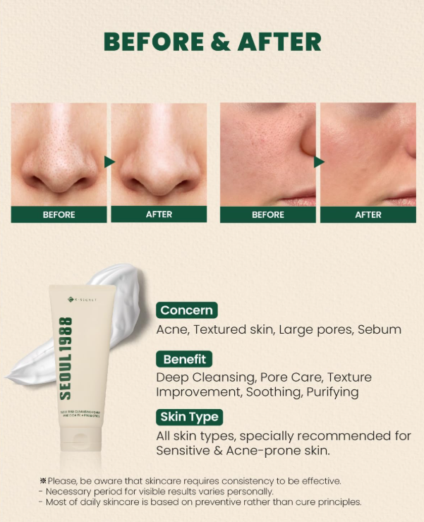 Experience the power of K-SECRET’s SEOUL 1988 Cleansing Foam, a luxurious blend of Pine Cica 1% and Probiotics.