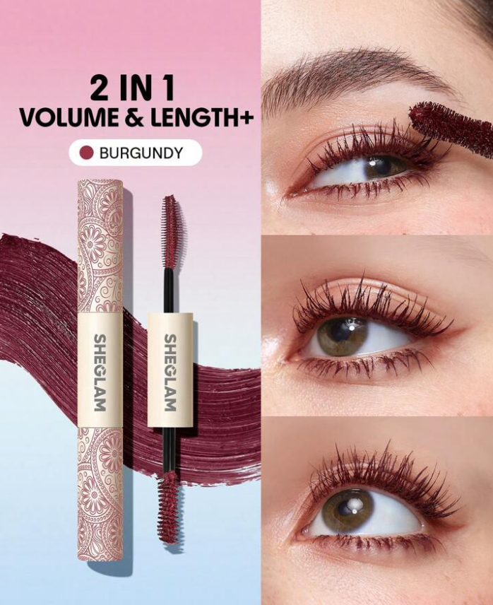 SHEGLAM All-in-One Volume & Length Mascara features a dual-ended brush with two different quick-drying, smudgeproof, yet washable formulas. Apply together or separately for a totally custom, clump-free look that delivers intense volume, length, curl, and separation!