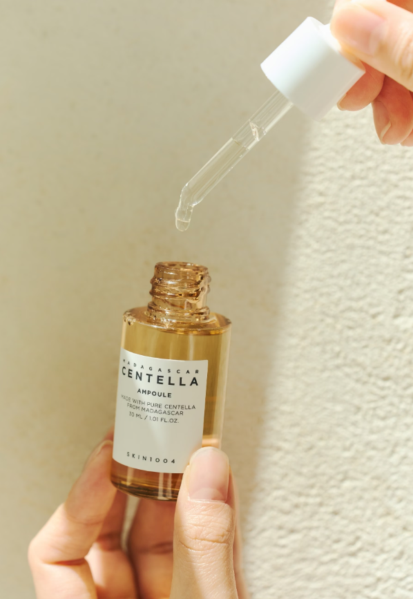 - SKIN1004’s signature ampoule with a light watery texture and non-sticky formula