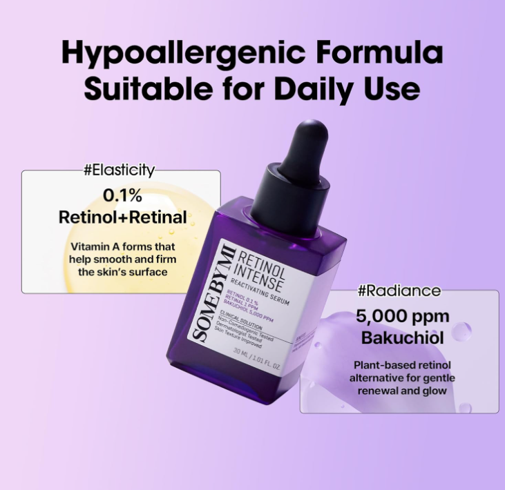 With 0.1% Retinol, 1ppm Retinal, and 5,000ppm Bakuchiol, it boosts collagen and elastin production, improves skin texture, and reduces fine lines.