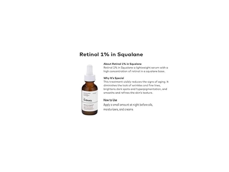 The Ordinary Tip: Start with Retinol 0.2% in Squalane and slowly work your way up to Retinol 0.5% in Squalane and Retinol 1% in Squalane.